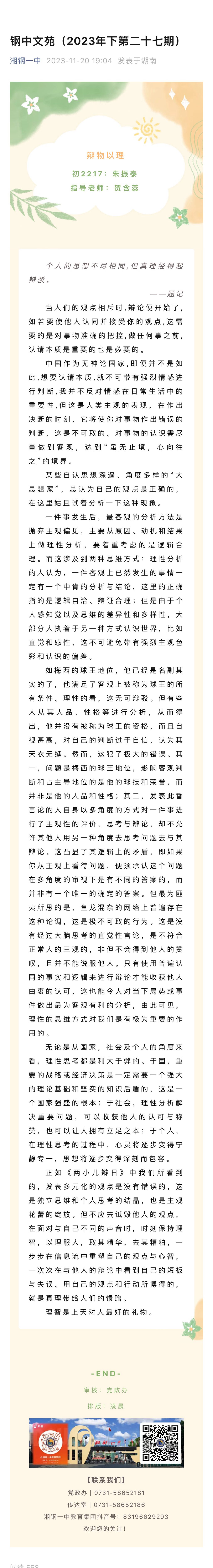 來源:微信公眾號 | 作者:湘鋼一中教育集團 | 發(fā)布時間: 2023-11-20 | 1557 次瀏覽 | 分享到: