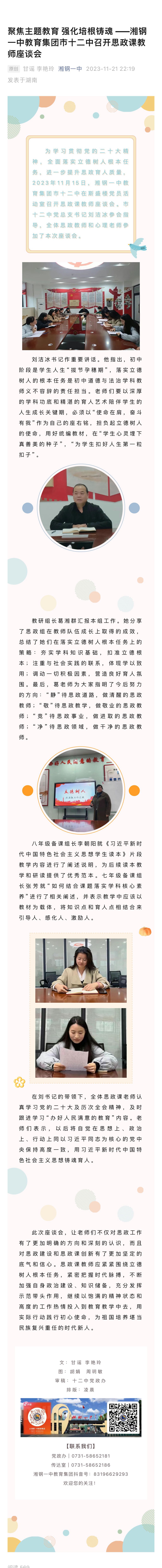 聚焦主題教育 強(qiáng)化培根鑄魂 ——湘鋼一中教育集團(tuán)市十二中召開思政課教師座談會