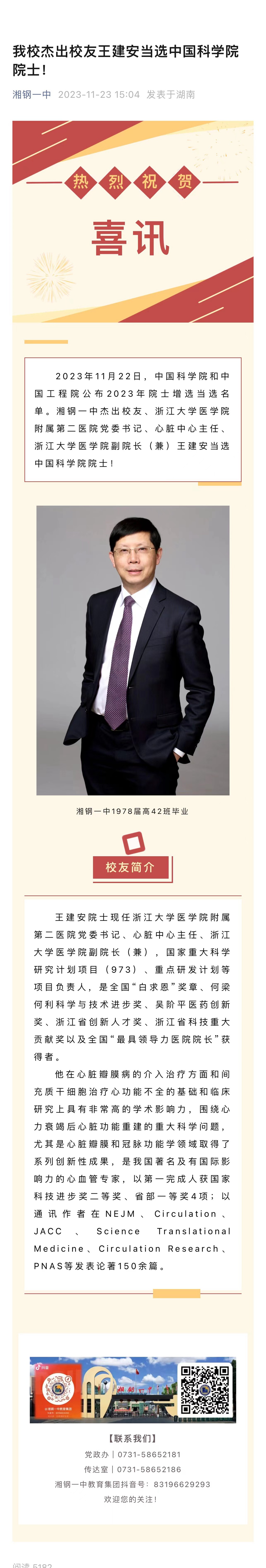 我校杰出校友王建安當(dāng)選中國科學(xué)院院士!