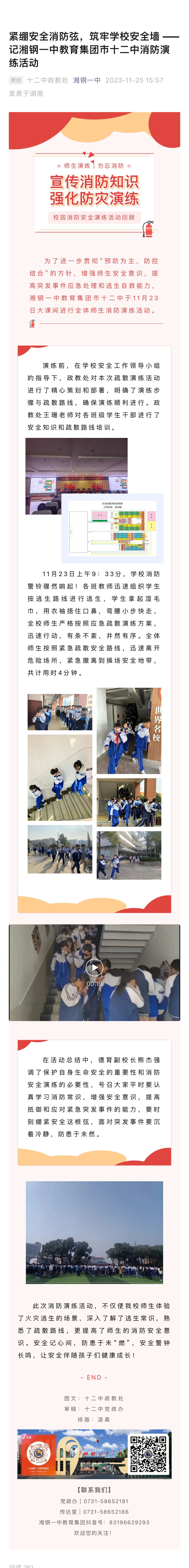 緊繃安全消防弦,筑牢學校安全墻 ——記湘鋼一中教育集團市十二中消防演練活動
