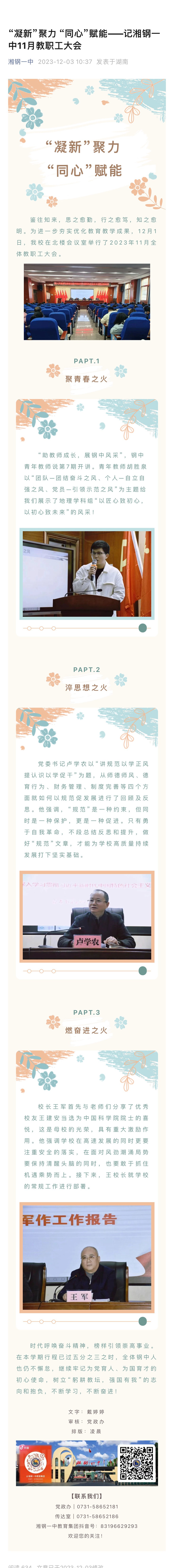 “凝新”聚力 “同心”賦能——記湘鋼一中11月教職工大會