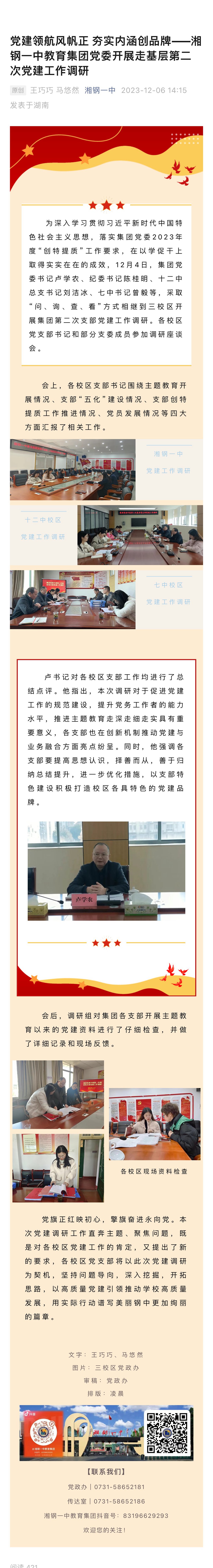 黨建領(lǐng)航風(fēng)帆正 夯實內(nèi)涵創(chuàng)品牌——湘鋼一中教育集團黨委開展走基層第二次黨建工作調(diào)研