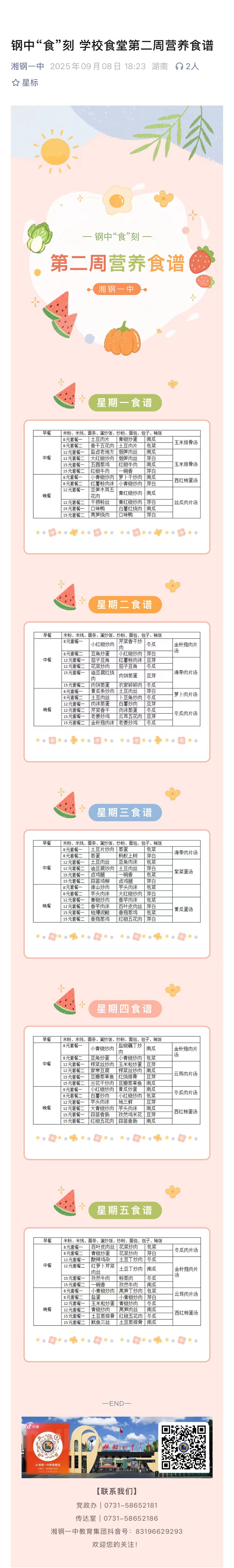 鋼中“食”刻 學(xué)校食堂第二周營養(yǎng)食譜