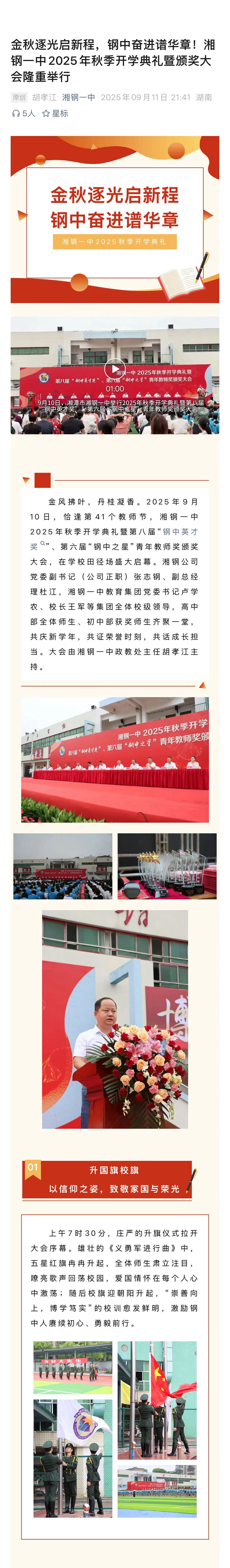 金秋逐光啟新程,鋼中奮進(jìn)譜華章!湘鋼一中2025年秋季開學(xué)典禮暨頒獎(jiǎng)大會(huì)隆重舉行