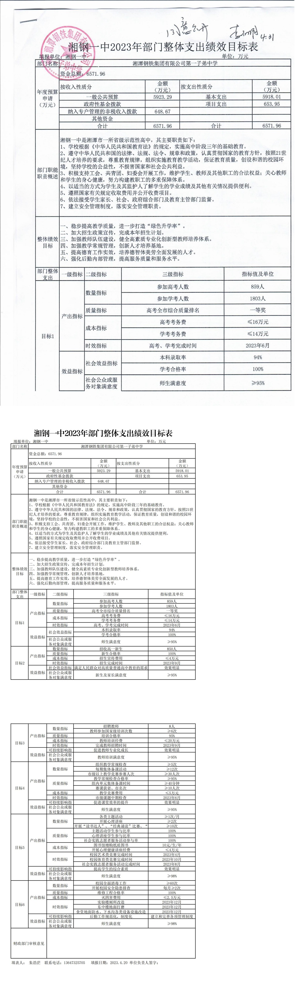 湘鋼一中2023年部門整體支出績(jī)效目標(biāo)表