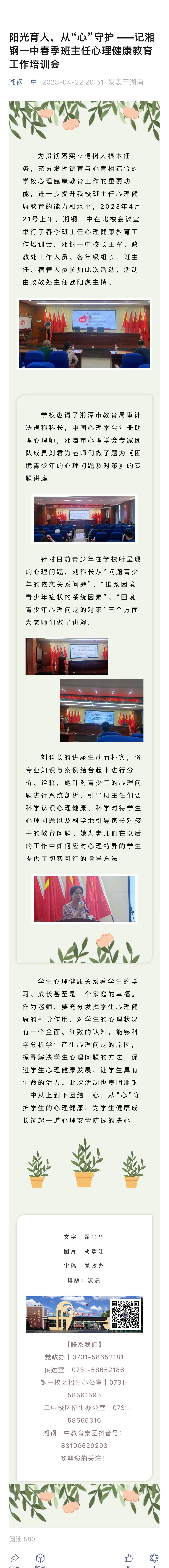 陽光育人,從“心”守護 ——記湘鋼一中春季班主任心理健康教育工作培訓會