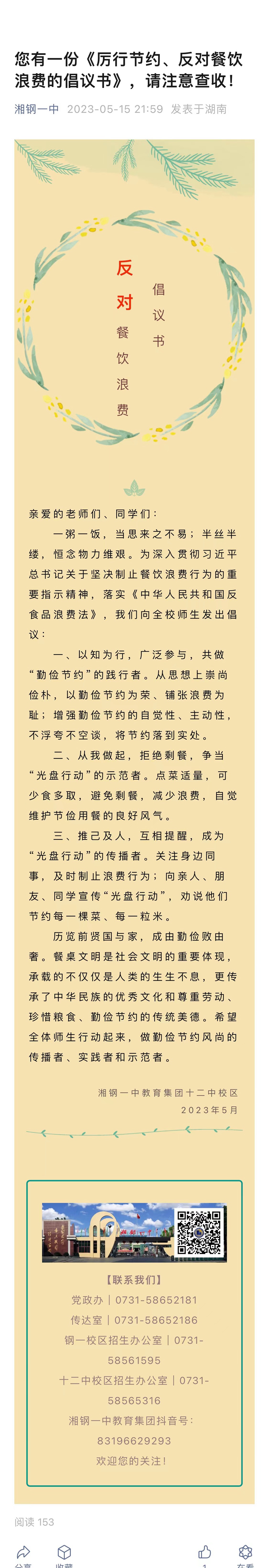 您有一份《厲行節(jié)約、反對餐飲浪費的倡議書》,請注意查收!