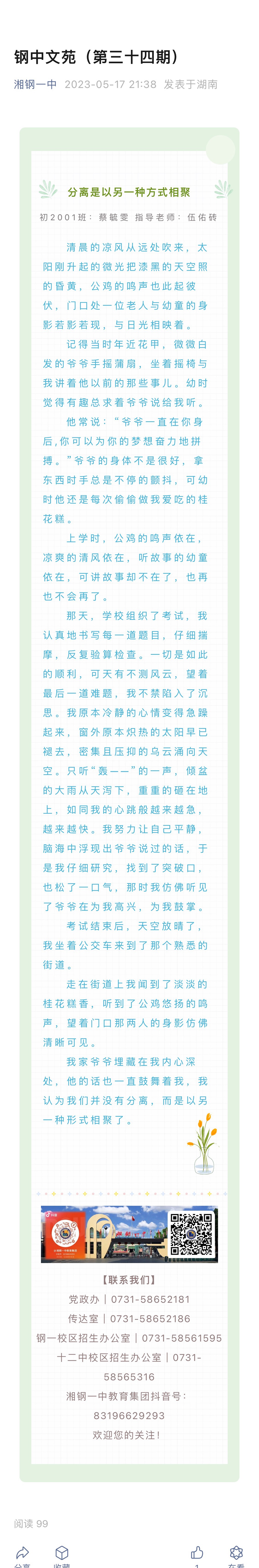 來源:微信公眾號(hào) | 作者:湘鋼一中教育集團(tuán) | 發(fā)布時(shí)間: 2023-05-17 | 2544 次瀏覽 | 分享到: