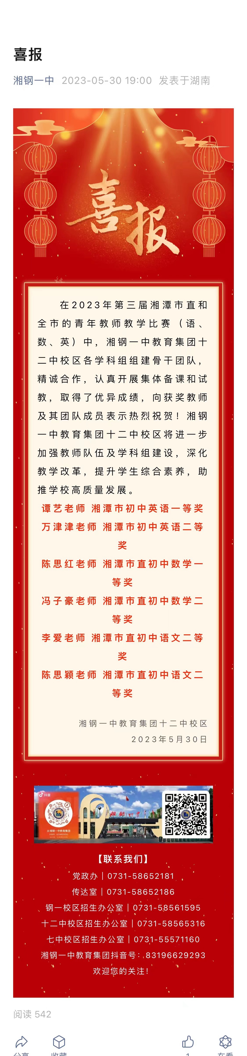 喜報:2023年第三屆湘潭市直和全市的青年教師教學比賽(語、數(shù)、英)
