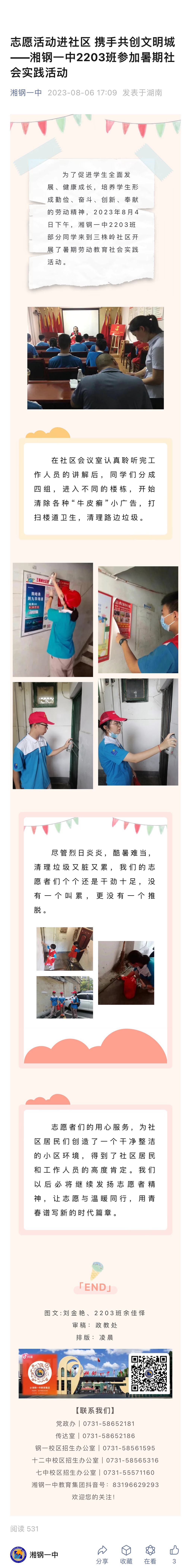 志愿活動(dòng)進(jìn)社區(qū) 攜手共創(chuàng)文明城——湘鋼一中2203班參加暑期社會(huì)實(shí)踐活動(dòng)
