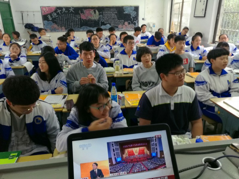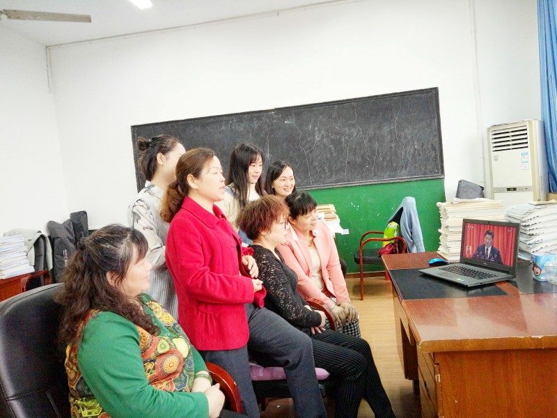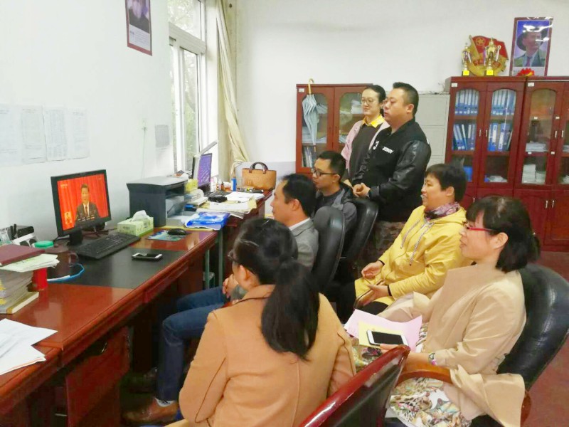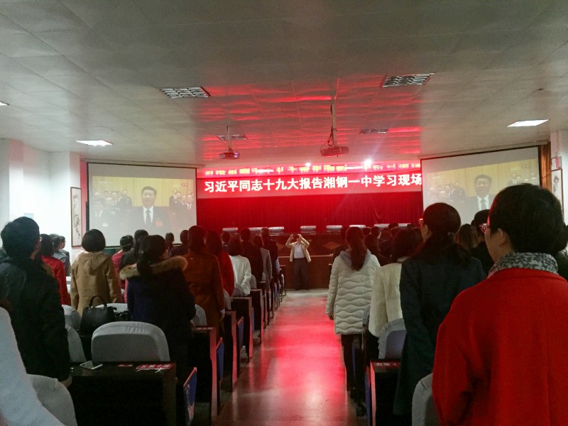 湘鋼一中教育集團師生們采用多種形式觀看中國共產(chǎn)黨第十九次全國代表大會的隆重召開,沒課的老師集中到北樓會議室聆聽報告,有課的老師上完課后在辦公室用手提電腦觀看,部分班級學(xué)生在教室觀看黨的十九大的隆重召開。
