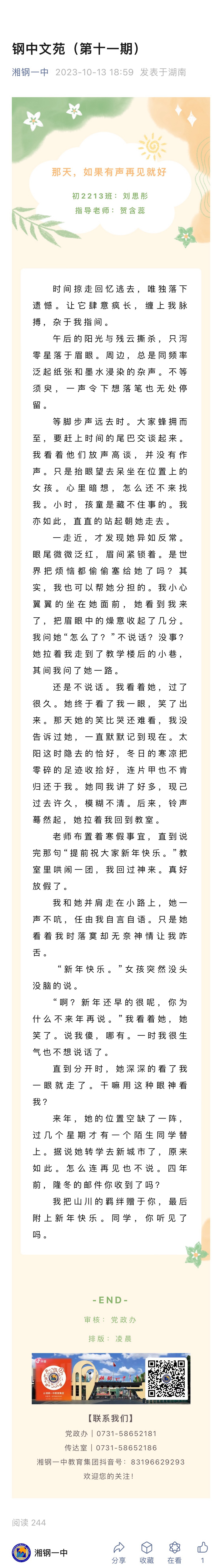 來源:微信公眾號 | 作者:湘鋼一中教育集團 | 發(fā)布時間: 2023-10-13 | 3208 次瀏覽 | 分享到: