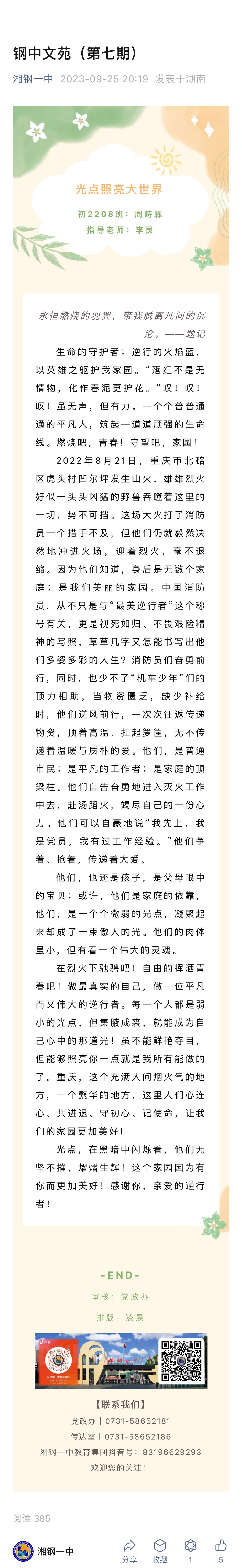 來源:微信公眾號 | 作者:湘鋼一中教育集團 | 發(fā)布時間: 2023-09-25 | 2108 次瀏覽 | 分享到: