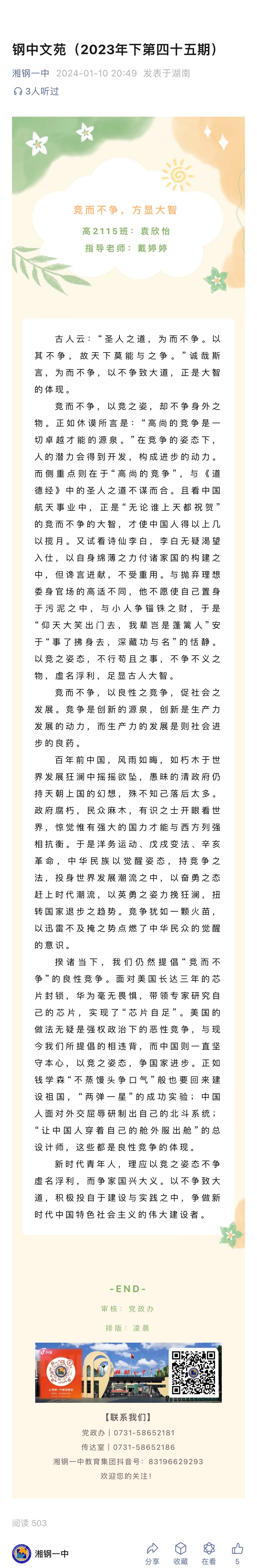 來源:微信公眾號 | 作者:湘鋼一中教育集團 | 發(fā)布時間: 2024-01-10 | 5642 次瀏覽 | 分享到: