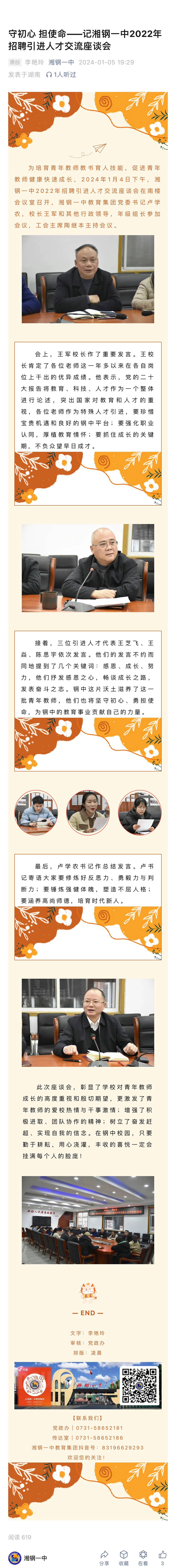 守初心 擔(dān)使命——記湘鋼一中2022年招聘引進(jìn)人才交流座談會(huì)