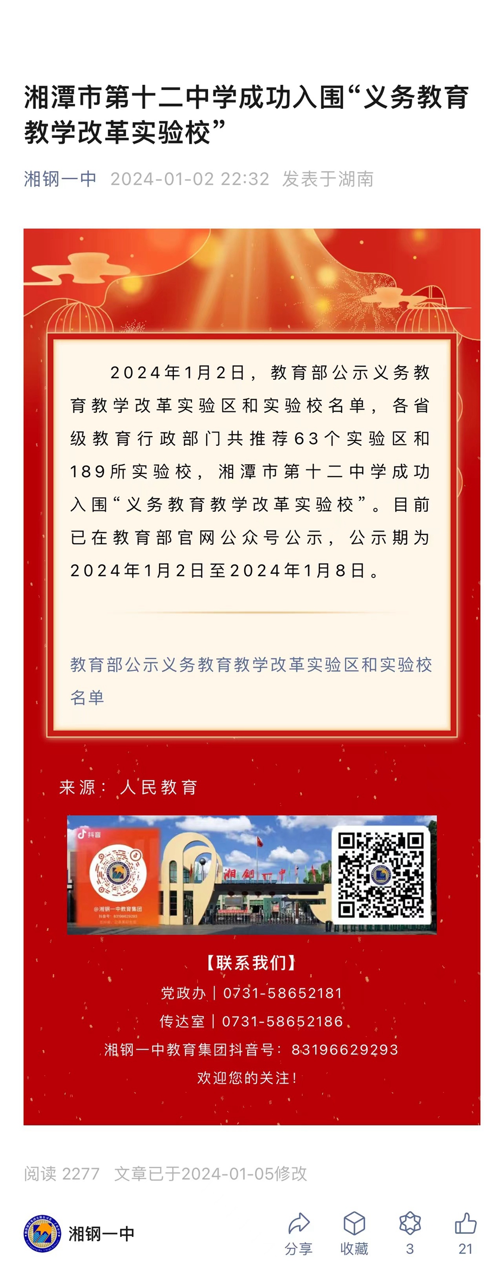 湘潭市第十二中學(xué)成功入圍“義務(wù)教育教學(xué)改革實驗?!?/div>