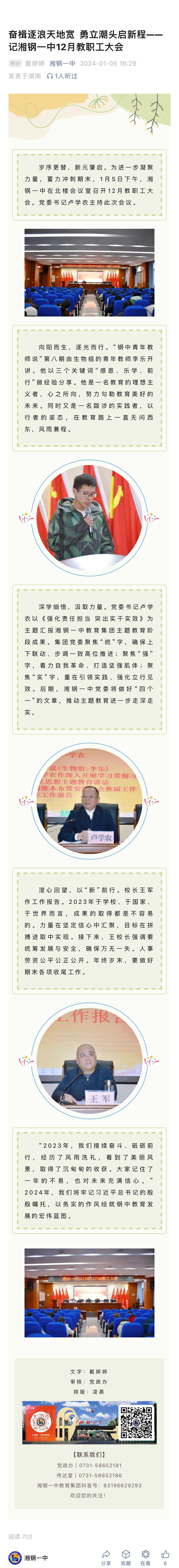 奮楫逐浪天地寬 勇立潮頭啟新程——記湘鋼一中12月教職工大會(huì)