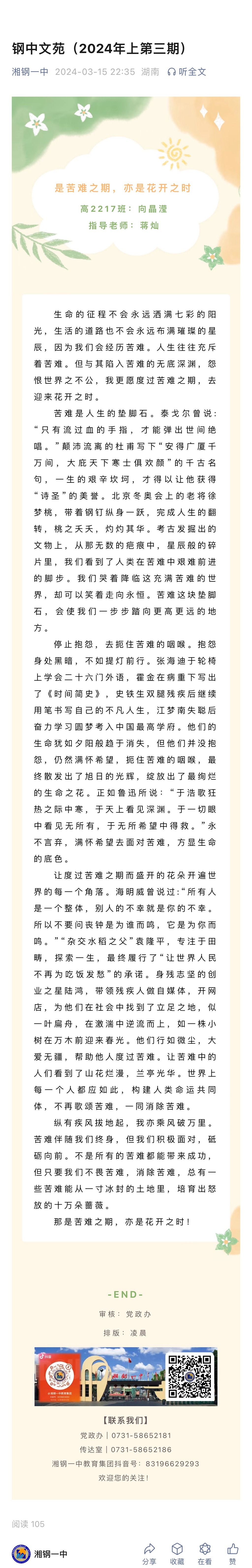 來源:微信公眾號 | 作者:湘鋼一中教育集團 | 發(fā)布時間: 2024-03-15 | 5788 次瀏覽 | 分享到: