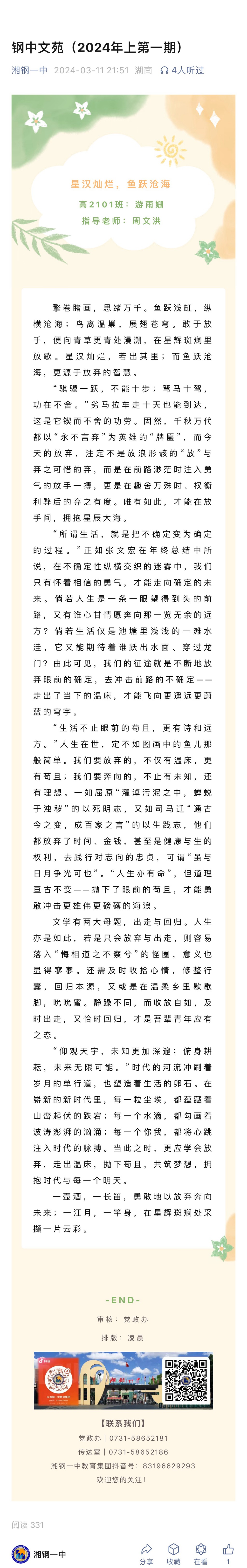 來源:微信公眾號 | 作者:湘鋼一中教育集團 | 發(fā)布時間: 2024-03-11 | 4730 次瀏覽 | 分享到: