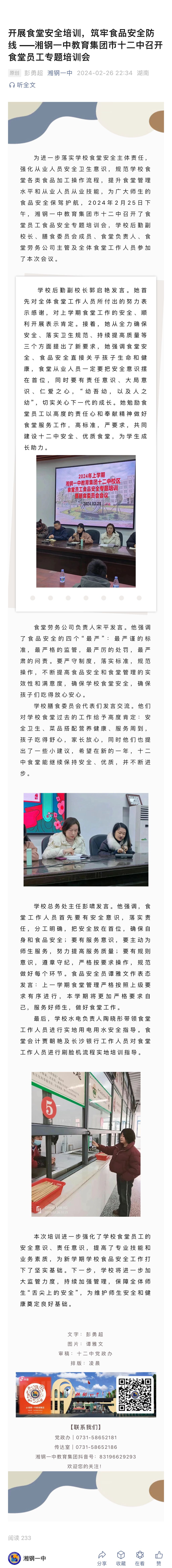 開展食堂安全培訓(xùn),筑牢食品安全防線 ——湘鋼一中教育集團(tuán)市十二中召開食堂員工專題培訓(xùn)會(huì)