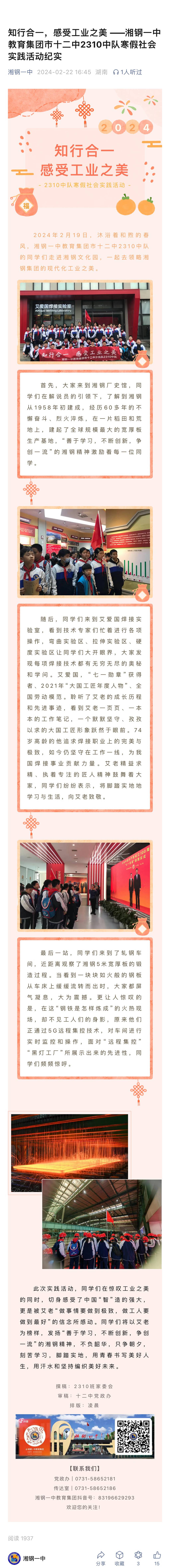知行合一,感受工業(yè)之美 ——湘鋼一中教育集團(tuán)市十二中2310中隊(duì)寒假社會(huì)實(shí)踐活動(dòng)紀(jì)實(shí)