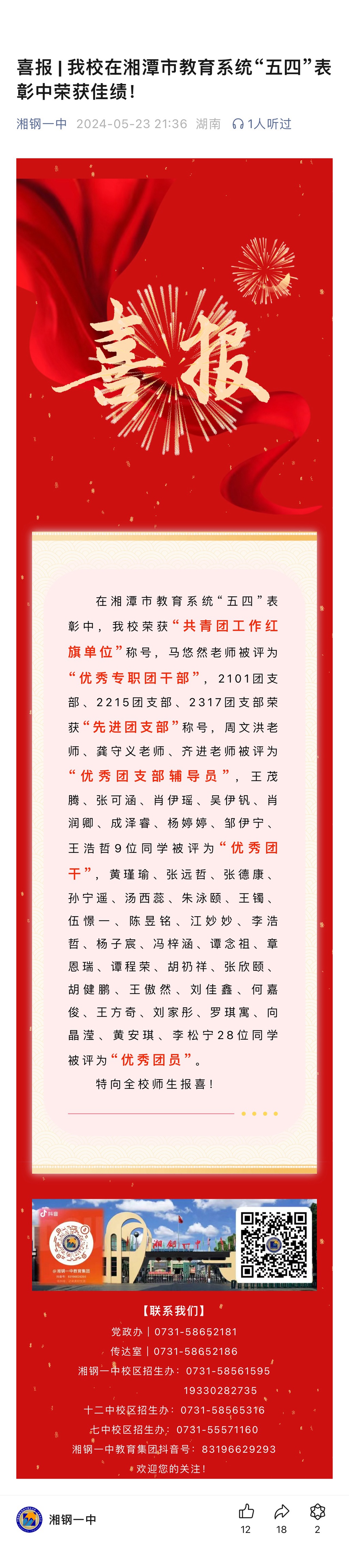 喜報 | 我校在湘潭市教育系統(tǒng)“五四”表彰中榮獲佳績!