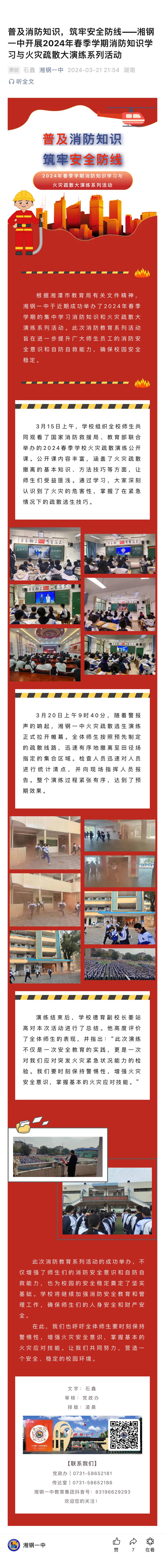 普及消防知識(shí),筑牢安全防線——湘鋼一中開展2024年春季學(xué)期消防知識(shí)學(xué)習(xí)與火災(zāi)疏散大演練系列活動(dòng)