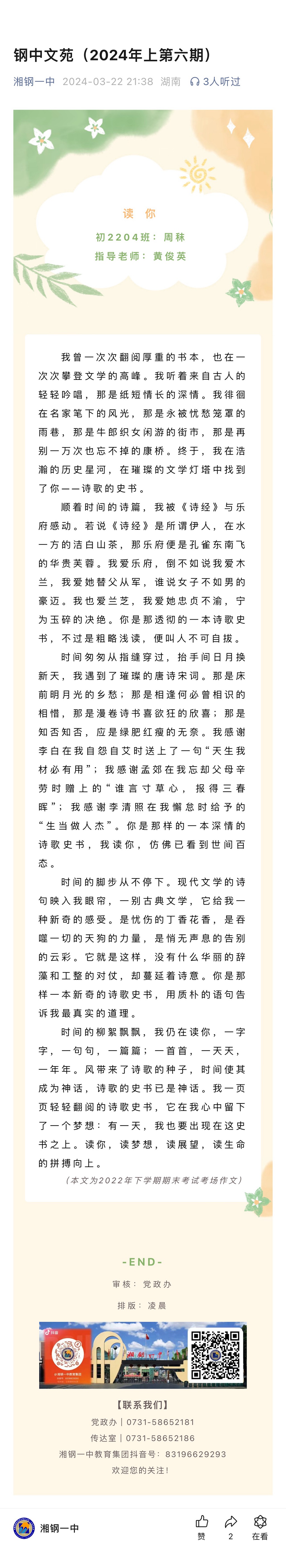 來(lái)源:微信公眾號(hào) | 作者:湘鋼一中教育集團(tuán) | 發(fā)布時(shí)間: 2024-03-22 | 2252 次瀏覽 | 分享到: