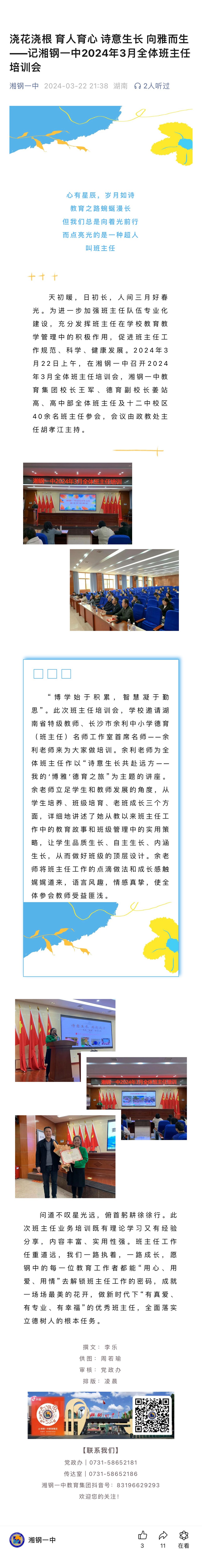 澆花澆根 育人育心 詩(shī)意生長(zhǎng) 向雅而生 ——記湘鋼一中2024年3月全體班主任培訓(xùn)會(huì)