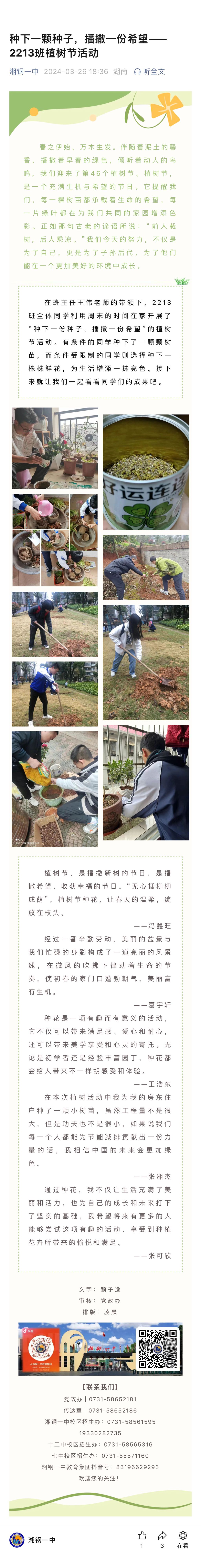 種下一顆種子,播撒一份希望——2213班植樹節(jié)活動
