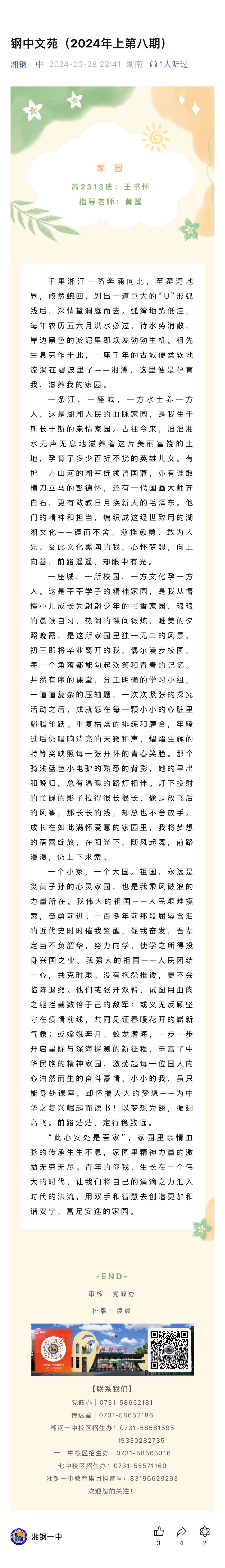 來源:微信公眾號 | 作者:湘鋼一中教育集團(tuán) | 發(fā)布時間: 2024-03-28 | 1813 次瀏覽 | 分享到: