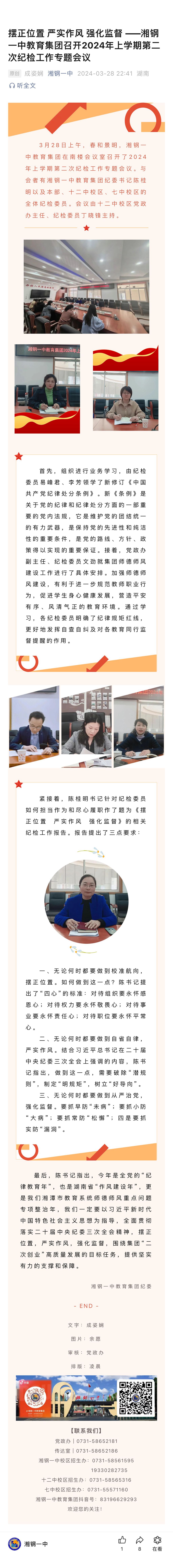 擺正位置 嚴(yán)實(shí)作風(fēng) 強(qiáng)化監(jiān)督 ——湘鋼一中教育集團(tuán)召開2024年上學(xué)期第二次紀(jì)檢工作專題會(huì)議