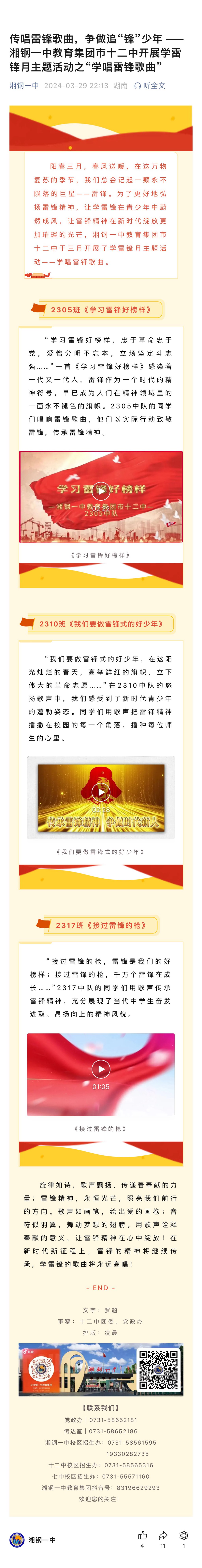 傳唱雷鋒歌曲,爭做追“鋒”少年 ——湘鋼一中教育集團(tuán)市十二中開展學(xué)雷鋒月主題活動之“學(xué)唱雷鋒歌曲”