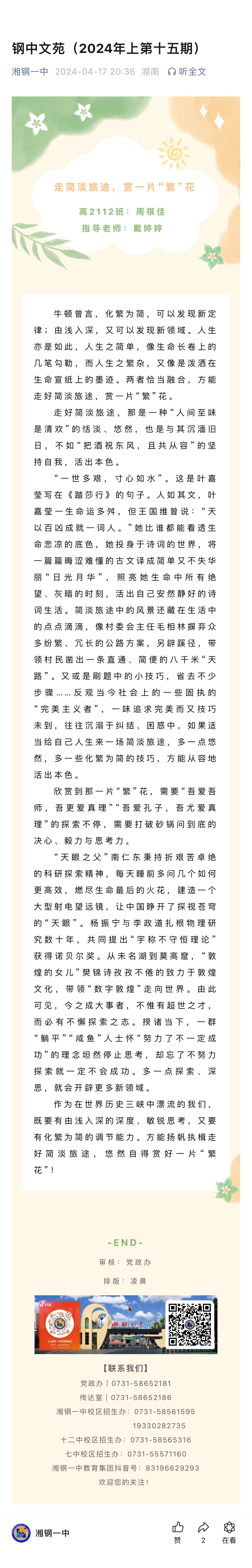來源:微信公眾號 | 作者:湘鋼一中教育集團 | 發(fā)布時間: 2024-04-17 | 6370 次瀏覽 | 分享到: