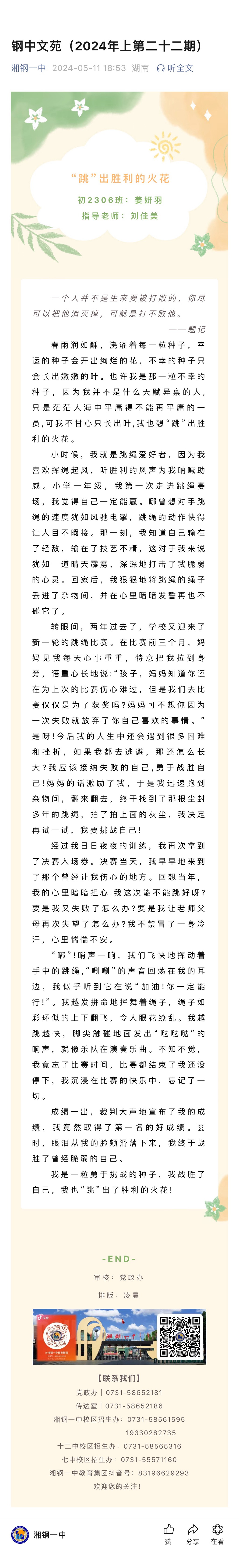 來源:微信公眾號 | 作者:湘鋼一中教育集團 | 發(fā)布時間: 2024-05-11 | 6722 次瀏覽 | 分享到: