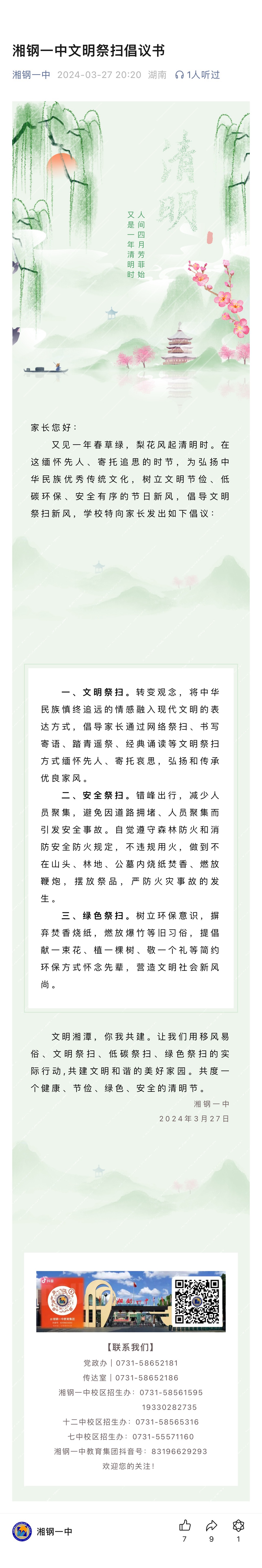 湘鋼一中文明祭掃倡議書