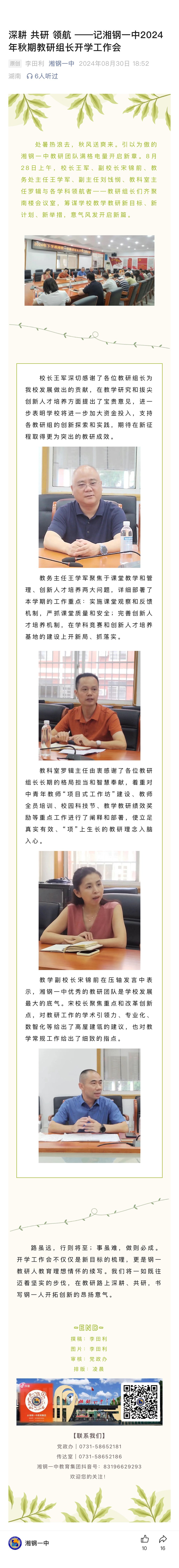 深耕 共研 領航 ——記湘鋼一中2024年秋期教研組長開學工作會
