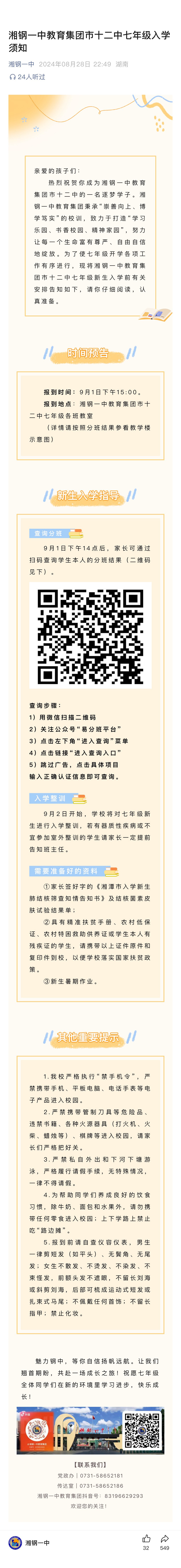 湘鋼一中教育集團(tuán)市十二中七年級(jí)入學(xué)須知