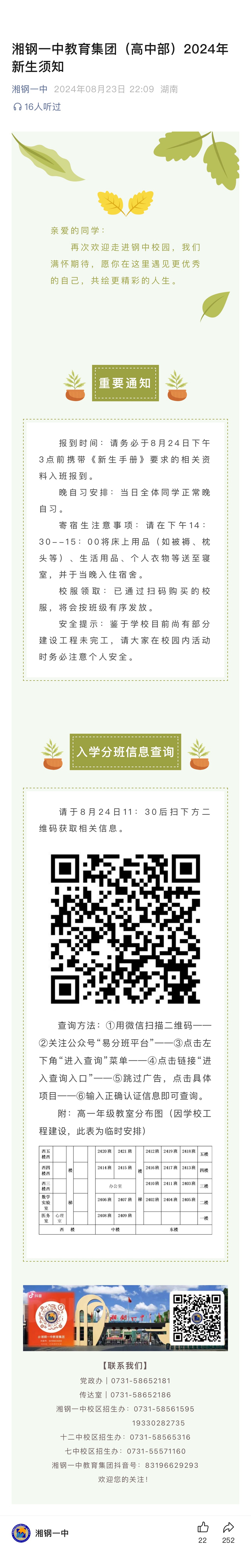 湘鋼一中教育集團(tuán)(高中部)2024年新生須知