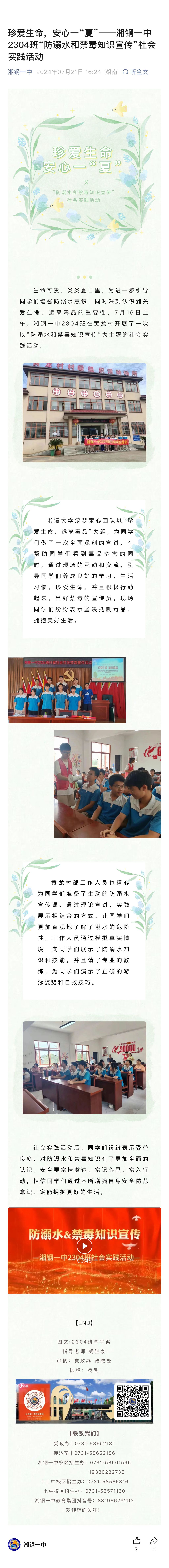 珍愛生命,安心一“夏”——湘鋼一中2304班“防溺水和禁毒知識宣傳”社會實踐活動