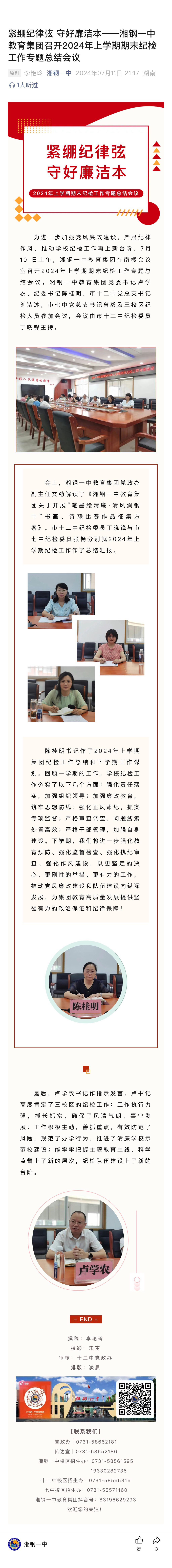 緊繃紀(jì)律弦 守好廉潔本——湘鋼一中教育集團(tuán)召開(kāi)2024年上學(xué)期期末紀(jì)檢工作專(zhuān)題總結(jié)會(huì)議