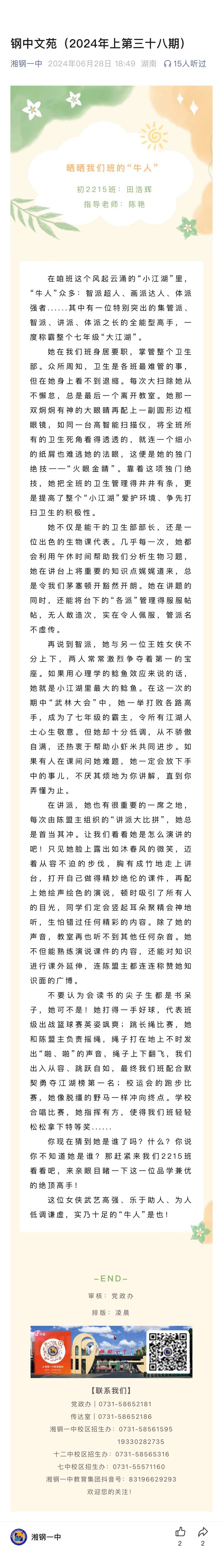 來源:微信公眾號 | 作者:湘鋼一中教育集團(tuán) | 發(fā)布時(shí)間: 2024-06-28 | 3455 次瀏覽 | 分享到: