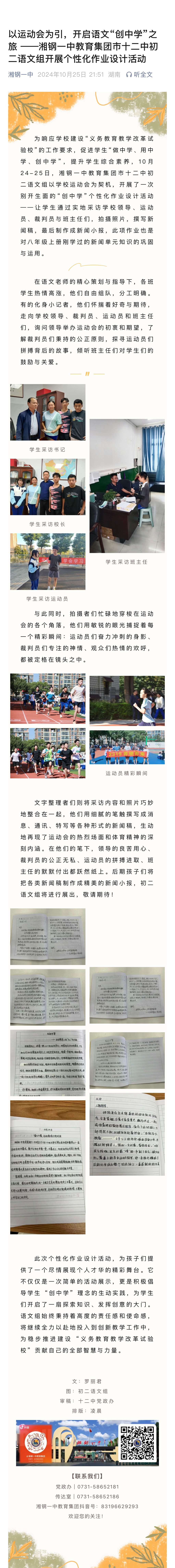 以運(yùn)動(dòng)會(huì)為引,開啟語(yǔ)文“創(chuàng)中學(xué)”之旅 ——湘鋼一中教育集團(tuán)市十二中初二語(yǔ)文組開展個(gè)性化作業(yè)設(shè)計(jì)活動(dòng)
