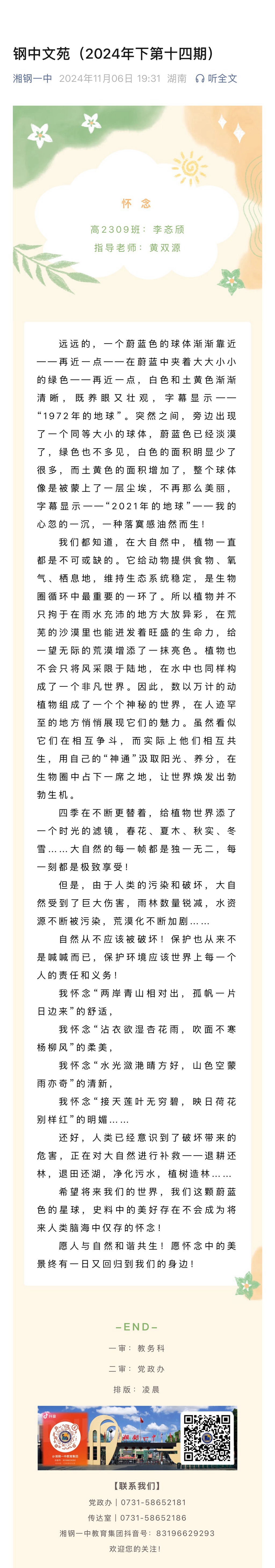 來源:微信公眾號 | 作者:湘鋼一中教育集團 | 發(fā)布時間: 2024-11-06 | 6360 次瀏覽 | 分享到: