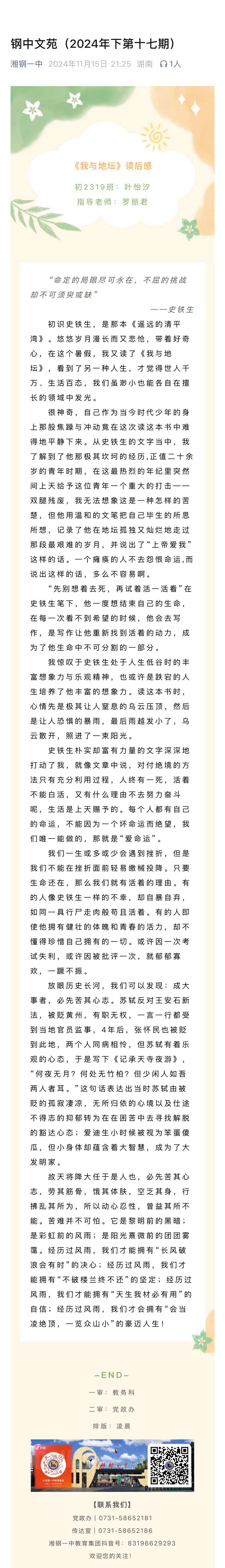 來源:微信公眾號 | 作者:湘鋼一中教育集團 | 發(fā)布時間: 2024-11-15 | 6208 次瀏覽 | 分享到: