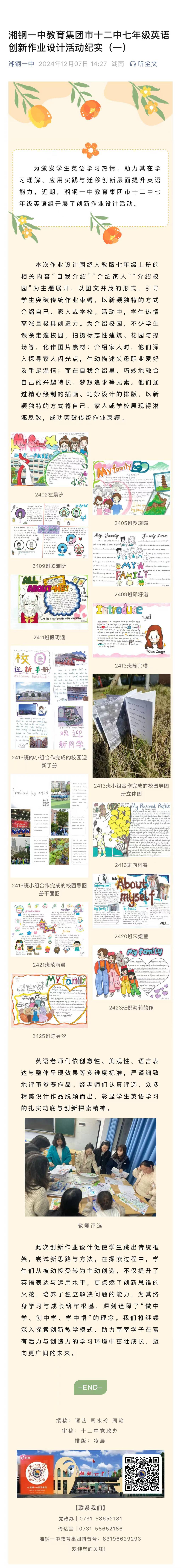 湘鋼一中教育集團市十二中七年級英語創(chuàng)新作業(yè)設計活動紀實(一)