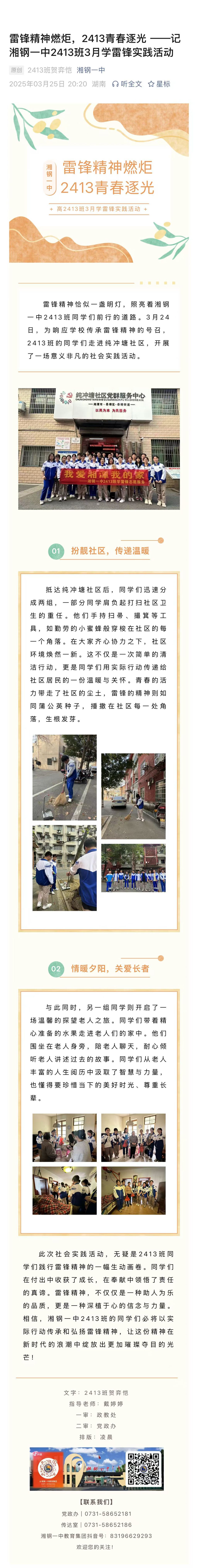 雷鋒精神燃炬,2413青春逐光 ——記湘鋼一中2413班3月學(xué)雷鋒實(shí)踐活動(dòng)