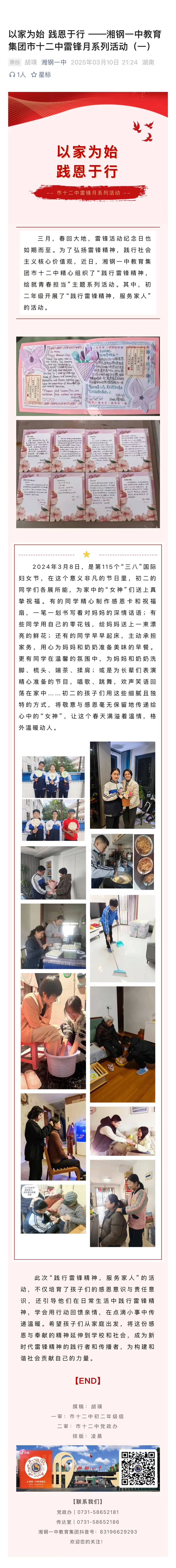 以家為始 踐恩于行 ——湘鋼一中教育集團市十二中雷鋒月系列活動(一)
