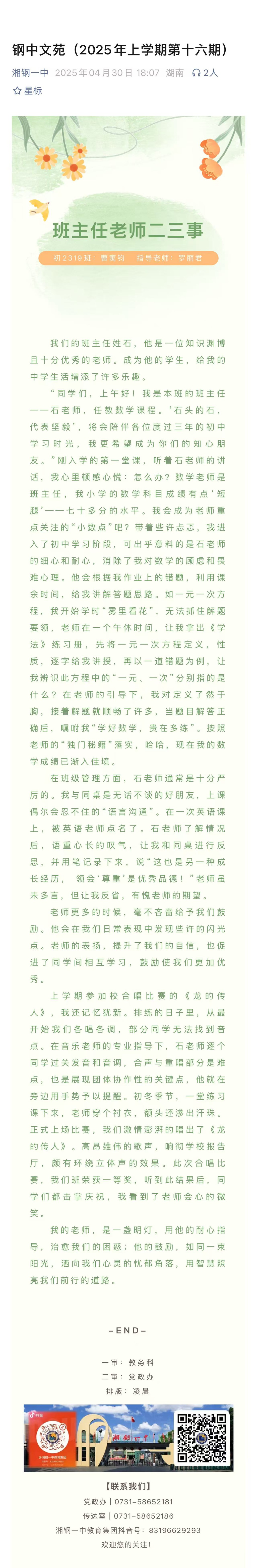 來源:微信公眾號 | 作者:湘鋼一中教育集團 | 發(fā)布時間: 2025-04-30 | 3178 次瀏覽 | 分享到: