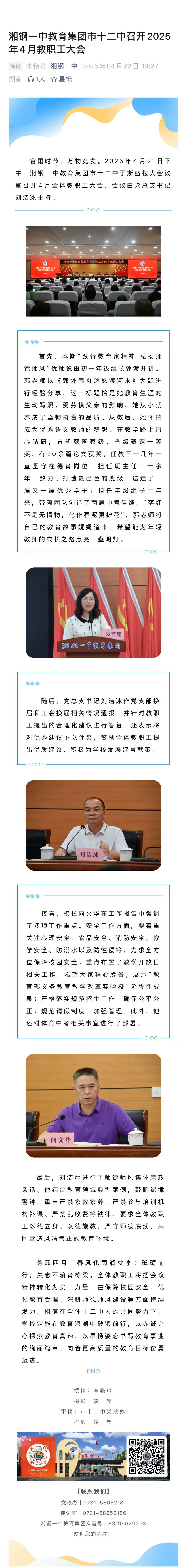湘鋼一中教育集團市十二中召開2025年4月教職工大會
